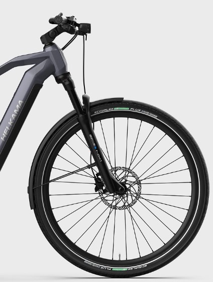 Trelock LS900 -etuvalo ja Spanninga Pimento XE -takavalo hämäräkytkimellä takaavat erinomaisen näkyvyyden ja turvallisuuden myös pimeällä. Kestävät lokasuojat suojaavat tehokkaasti roiskeilta ja lialta, ja Suntourin ilmajousitettu etuhaarukka pehmentää epätasaisuudet niin kaupunkiajossa kuin sorateillä. Kokonaisuus on suunniteltu aktiiviseen ja monipuoliseen käyttöön.